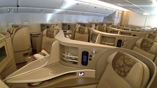 a) Singapore Airlines business class