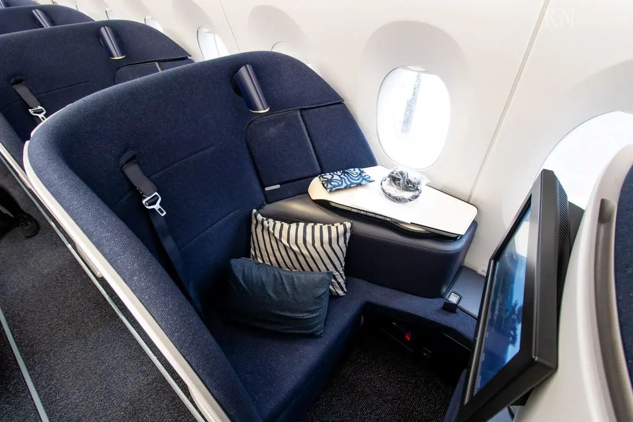 Finnair's AirLounge business seat is genuinely good: no-recline gimmick aside, it's comfortable for sleeping, with a modern Scandinavian cabin and solid bedding.