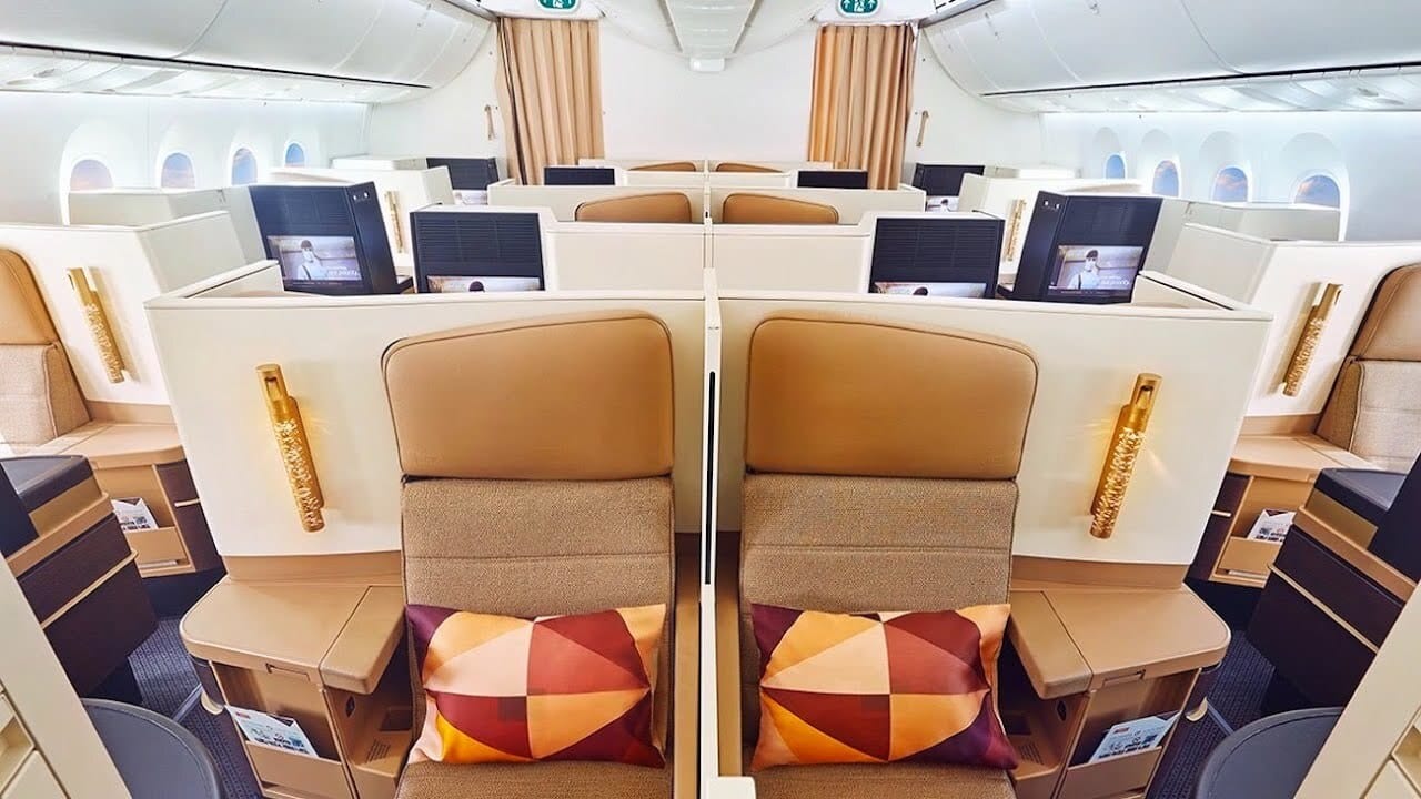You'll connect once in Abu Dhabi, with both long-haul legs typically operated by Etihad's Boeing 787-9 featuring their excellent Business Studio seats, which are fully flat, private, and refined. Keep in mind that if you choose Etihad’s lowest Business Class fare, called “Value”, you won’t get lounge access, free seat selection, and Etihad’s UAE Chauffeur service.