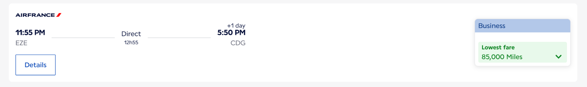 Buenos Aires (EZE) → Paris (CDG) for 85,000 Flying Blue miles