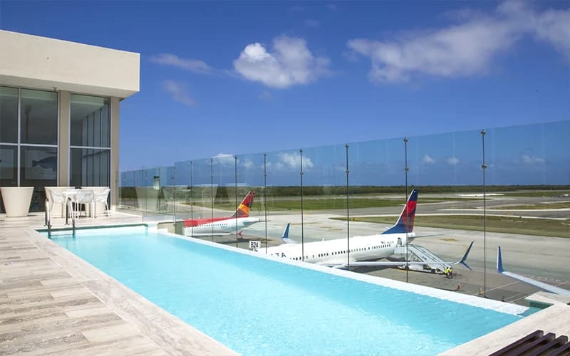 PUJ airport lounge pool with runway view